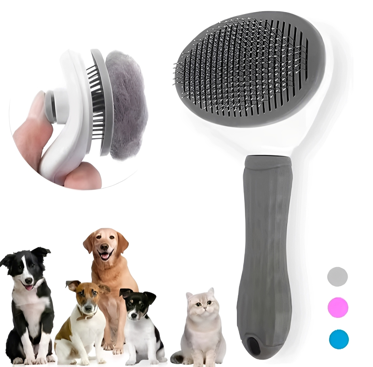 Transforme a rotina de cuidados com seu pet em um momento rápido, prático e sem estresse! O Pente Autolimpante Premium da Entretelhão foi desenvolvido para proporcionar a remoção eficiente de pelos soltos e subpelos de cães e gatos, garantindo higiene e conforto para o seu melhor amigo.